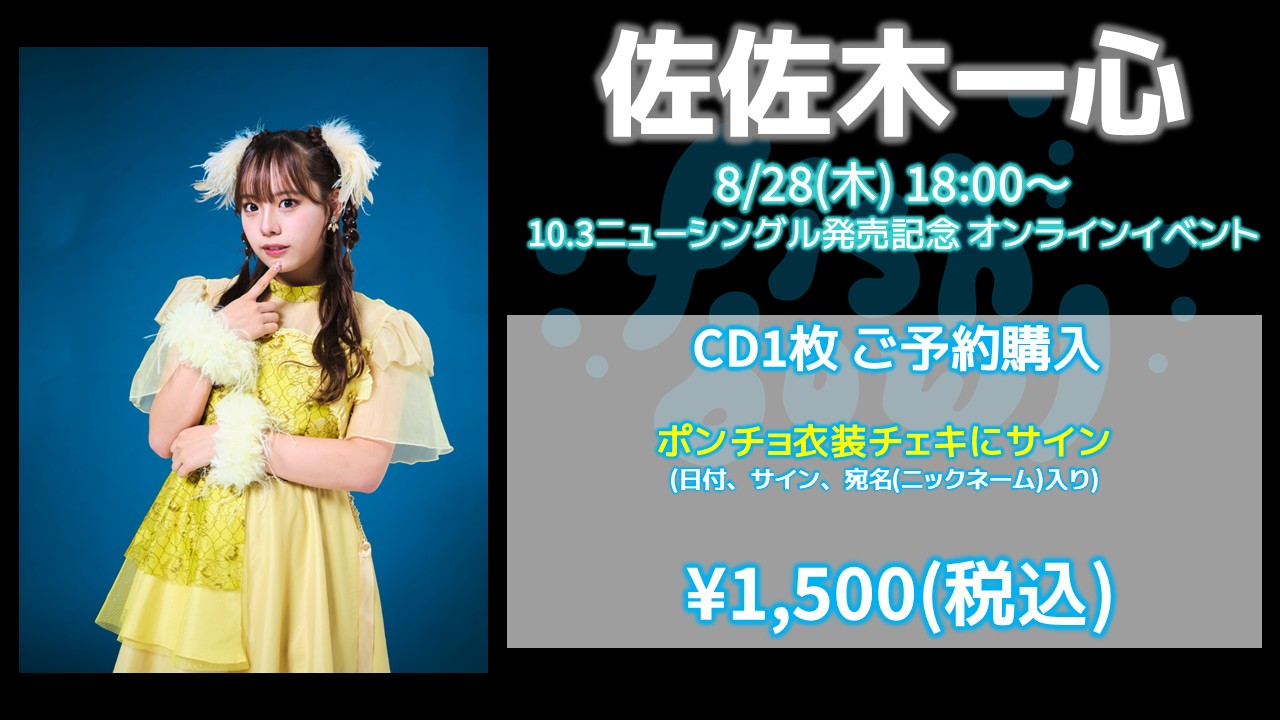 fishbowl / 佐佐木一心 CD1枚 ポンチョ衣装チェキにサイン(日付、宛名) 8/28(木)随時~