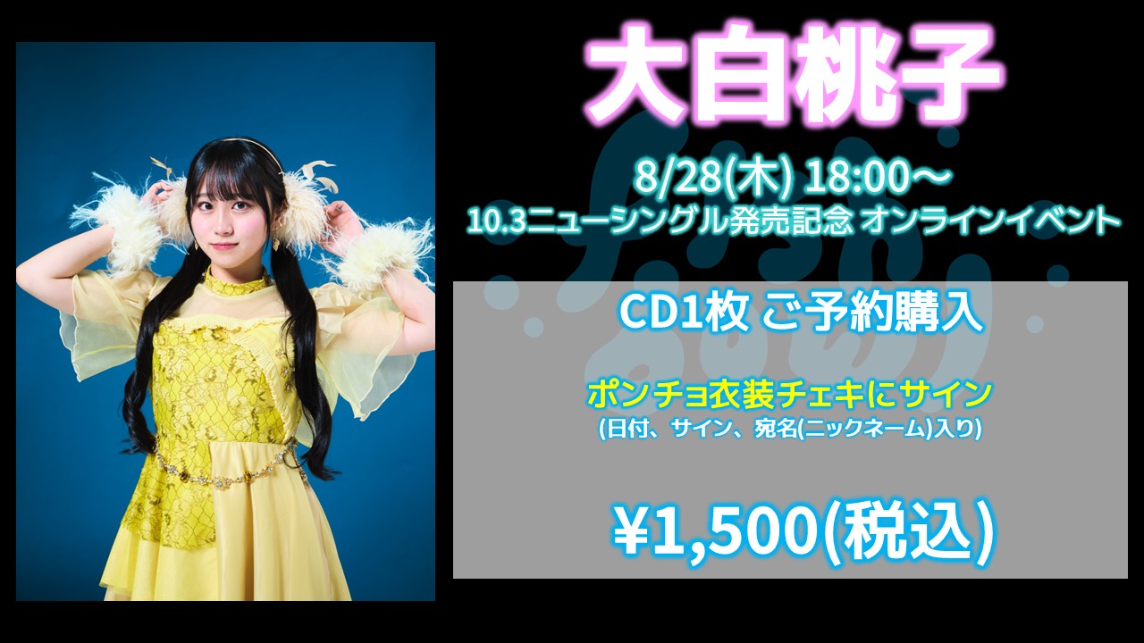 fishbowl / 大白桃子 CD1枚 ポンチョ衣装チェキにサイン(日付、宛名) 8/28(木)18:00~